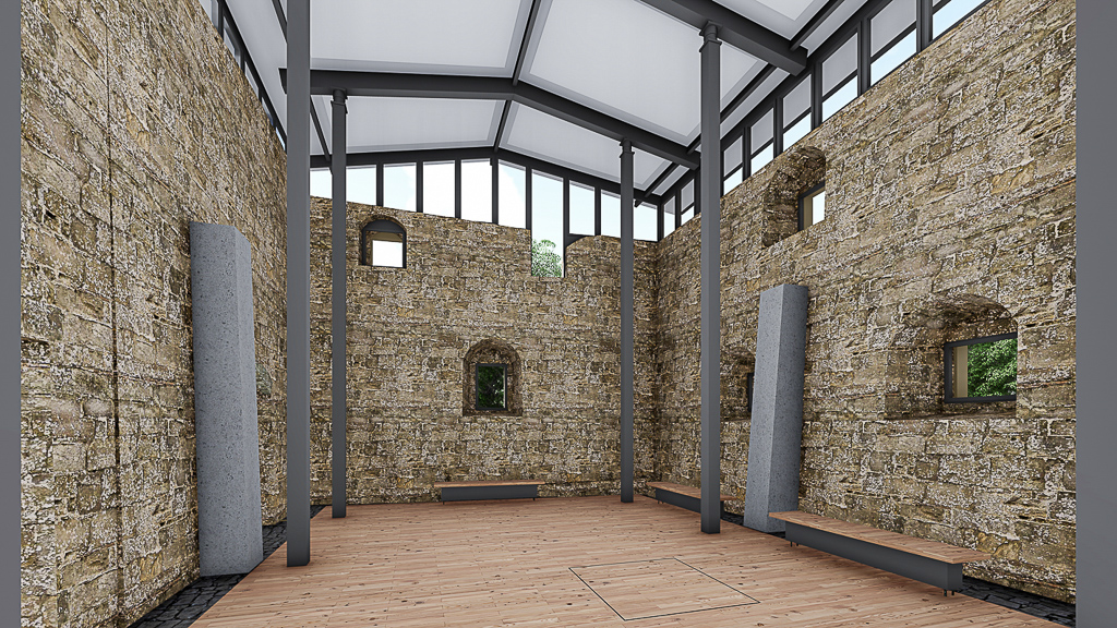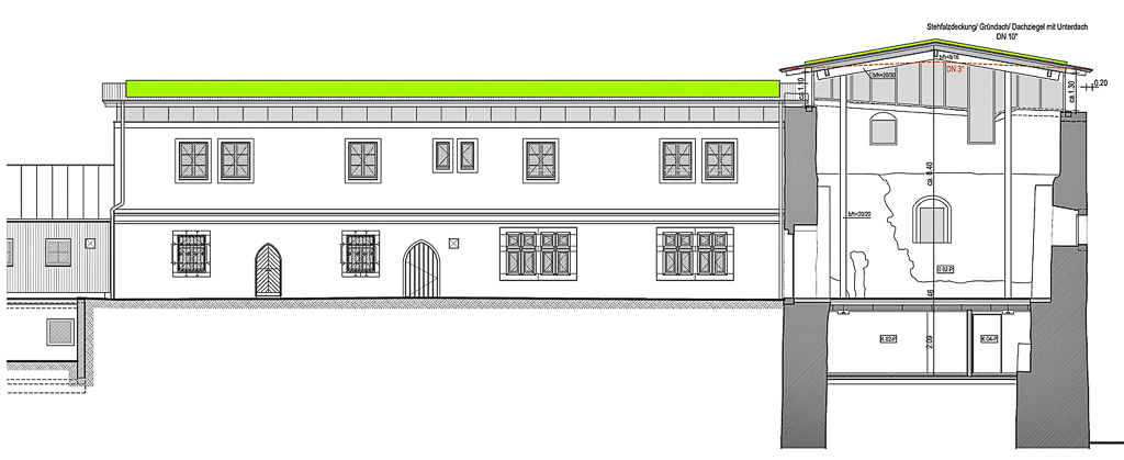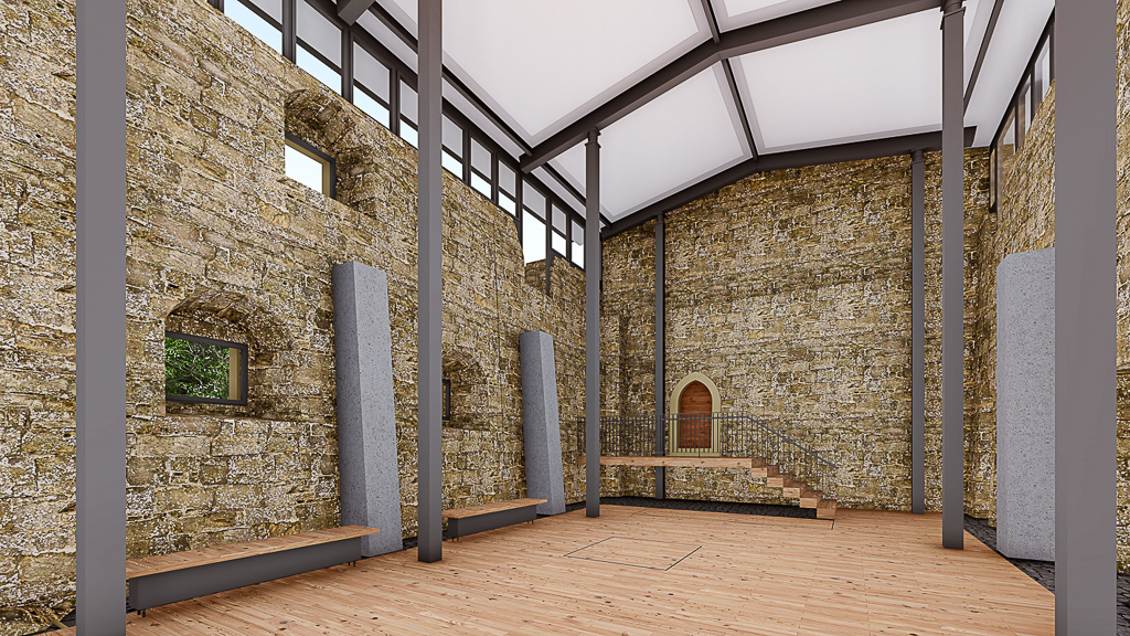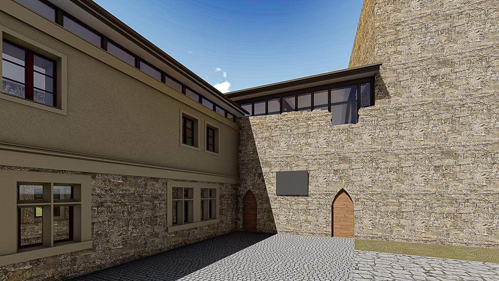 - Instandsetzung der historischen Burgruine mit Glasüberdachung für Palas und Gästehaus
